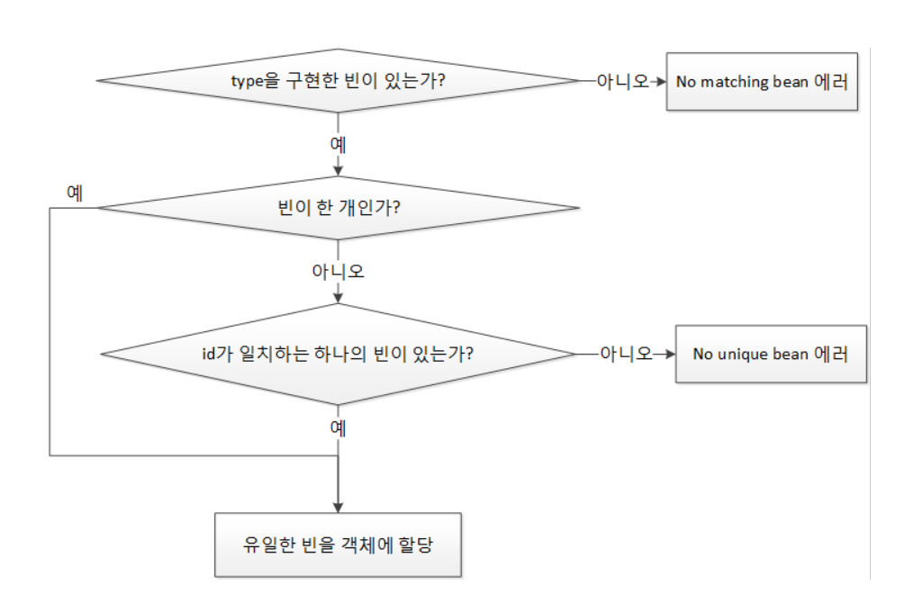 스프링의 @Autowired는 id와 type 중 type 구현에 우선순위가 있다.