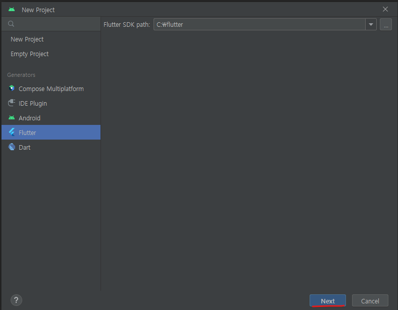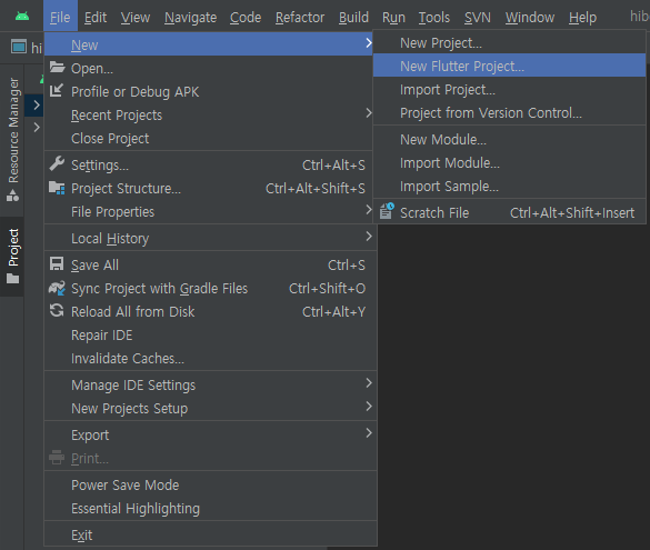 ※Android Studio에서 File > New > New Flutter Project 클릭