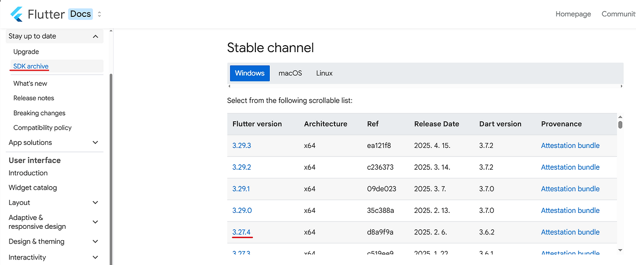 1. 플루터 공식 사이트에서 SDK 다운