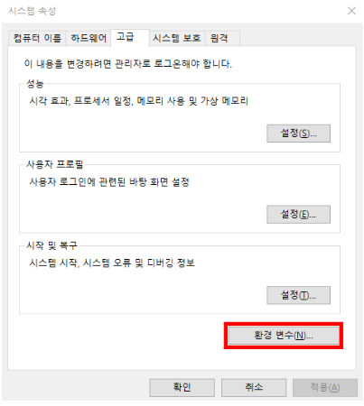 시스템속성 > 환경 변수